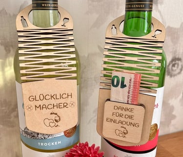 Personalisierte Designs aus verschiedenen Materialien mit Lasertechnik.