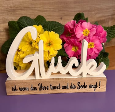 Personalisierte Deko- und Geschenkartikel aus verschiedenen Materialien.