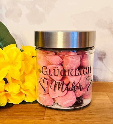 Personalisierte Deko- und Geschenkartikel aus verschiedenen Materialien.